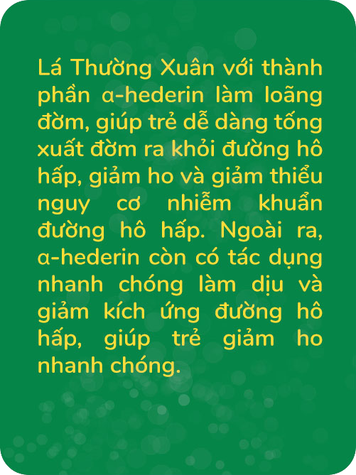 * Thành phần hoàn toàn tự nhiên, chiết xuất từ Lá Thường Xuân và Cỏ Xạ Hương