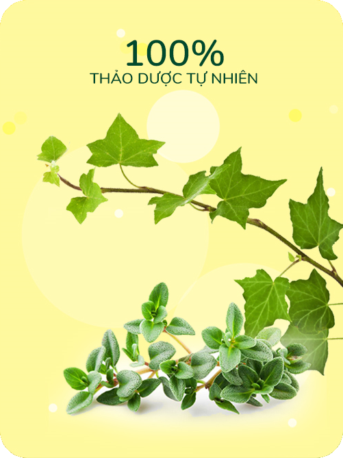 * Thành phần hoàn toàn tự nhiên, chiết xuất từ Lá Thường Xuân và Cỏ Xạ Hương